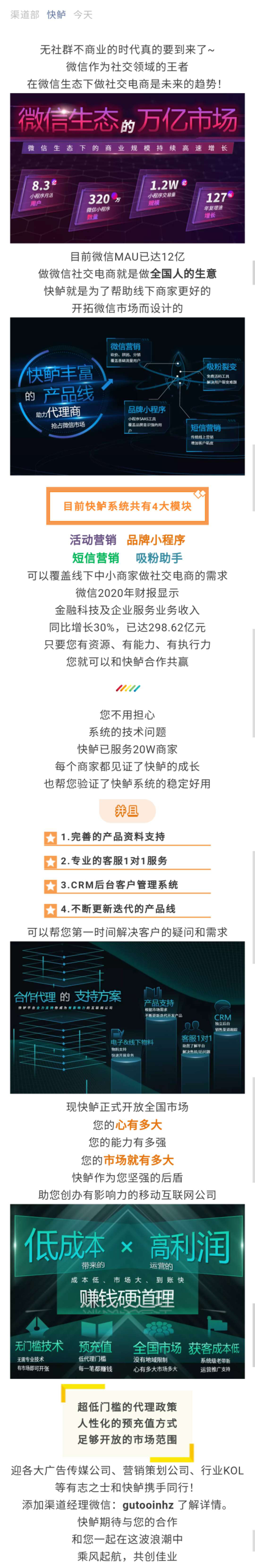 微信营销服务平台 > 公告与活动 > 快鲈代理商火热招募中·······