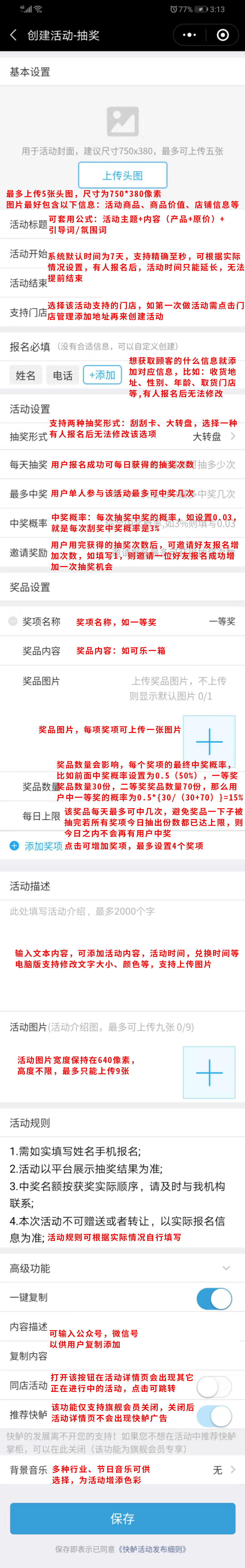 进入快鲈掌柜,点击【创建活动】,选择“抽奖”