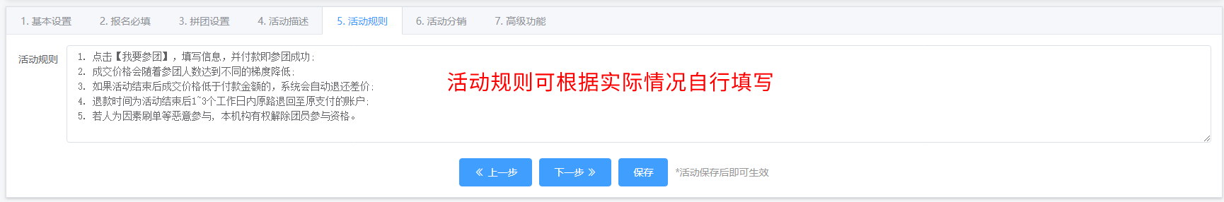 编辑:商家可以在已创建活动补充内容