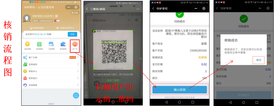 我说为什么不用快鲈掌柜,人家有一整套的营销系统,做活动直接用手机扫一扫就可以核销,记录什么的后台都有,根本不会搞错,是谁扫码登记的都有记录,从此再也不做背锅侠!