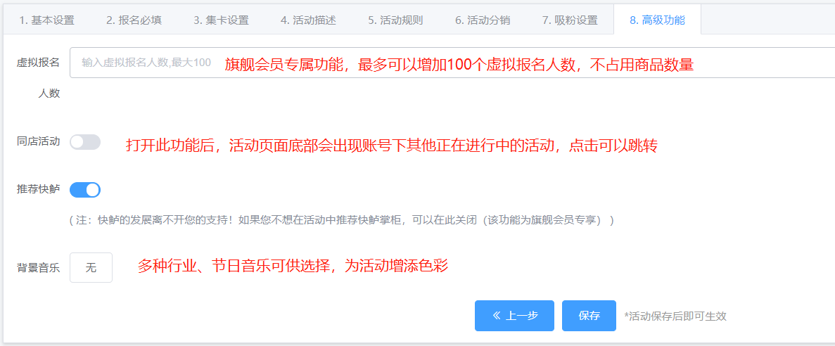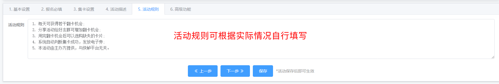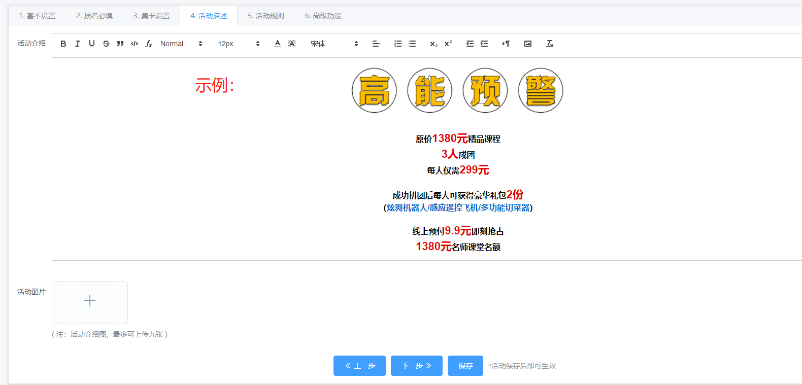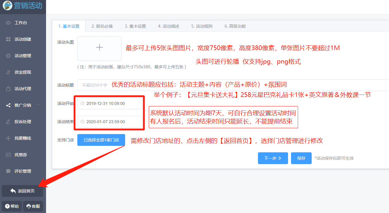 编辑:商家可以在已创建活动补充内容