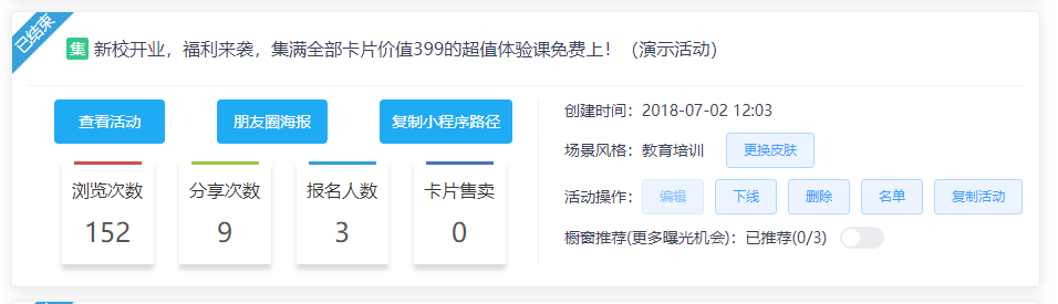 做好的活动进入【活动管理】查看